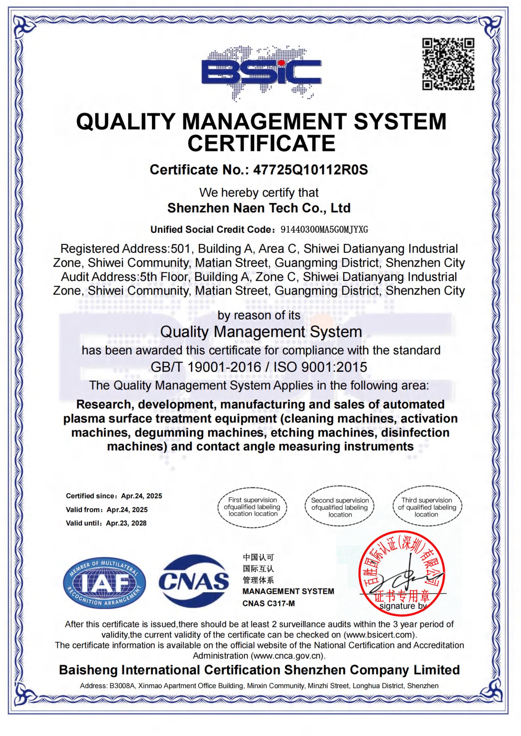 深圳納恩科技有限公司,是一家以中國為基地、面向全球的科技型國家高新技術企業、專注于等離子高端設備的研發,生產與銷售,憑借對大氣及真空中頻、射頻、微波等離子體核心技術的深度掌握,為全球各行各業提供極具競爭力的表面處理創新解決方案,穩居國際等離子體技術領域領先陣營。